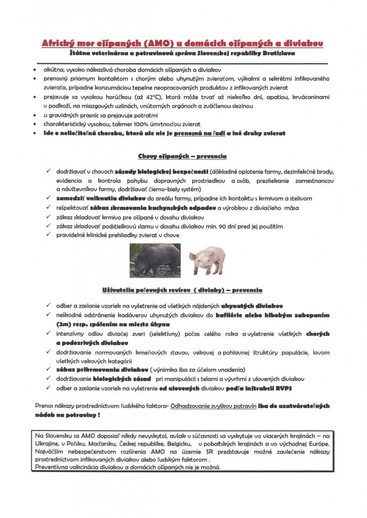 Africký mor ošípaných u domácich ošípaných a diviakov - upozornenie